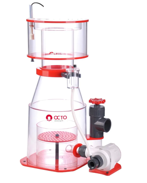 El nuevo e innovador skimmer de proteínas para sump Reef Octopus Regal 300-INT proporciona una potente filtración para acuarios de hasta 740 galones, donde el espacio en el sump es ilimitado. El Reef Octopus Regal 300-INT está fabricado con acrílico fundido de alta calidad y se desmonta completamente para su limpieza. Su cuerpo cónico híbrido estabiliza y concentra naturalmente la espuma rica en compuestos orgánicos a medida que asciende.
